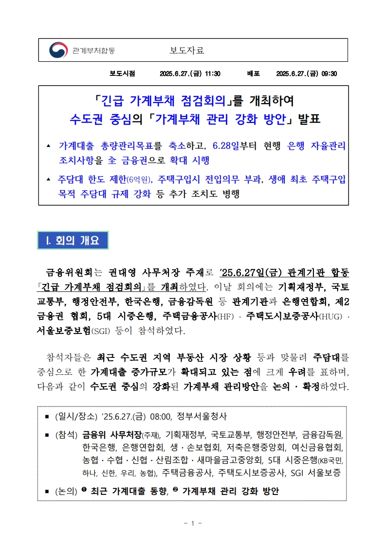 이것은 보도자로에 가계 부채의 총액 보다는 주요지역에 대한 규제가 더 목적이 크다고 보여집니다.