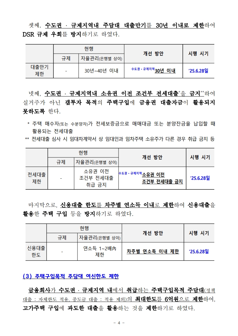 | 대출 종류 | 주요 규제 내용 | 비고 |