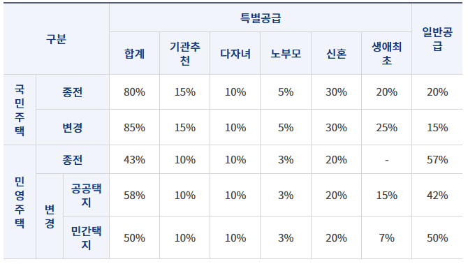 - 반영 물량: 공공 분양시 30%, 민영주택 20%