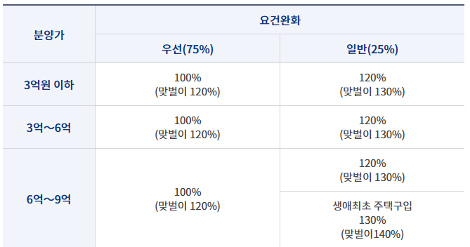 2. 민영 주택 분양 소득요건 : 분양가 6억원 이상에서 월 평균 소득 130% ( 맞벌이 140%)