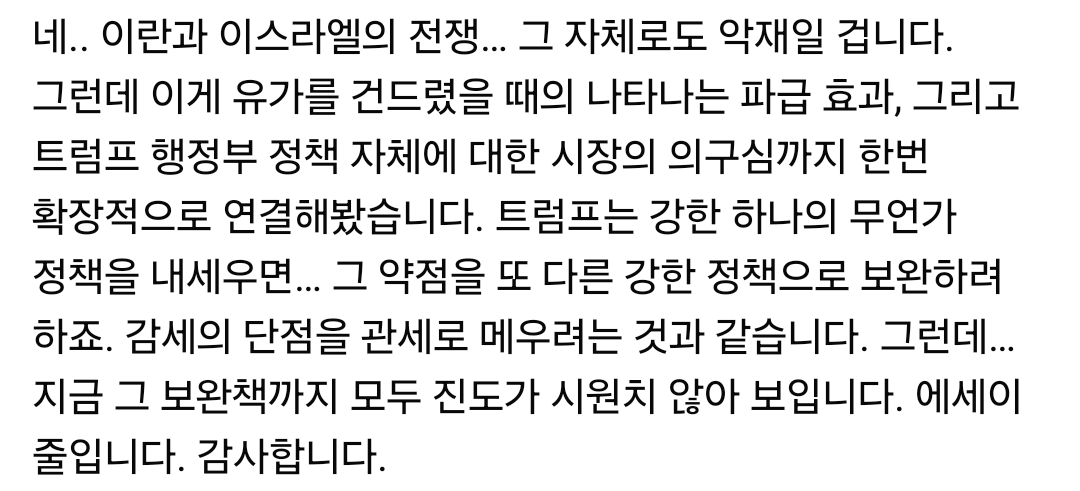 | 트럼프의 시간은 길어야 1년_ 샤프스터님 고견 (60) | 2025.06.14 |