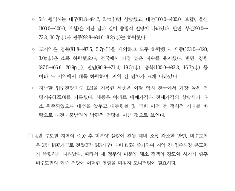 - 부산/광주/충북/충남/ 강원의 경우 전망지수가 많이 좋지 않습니다.
