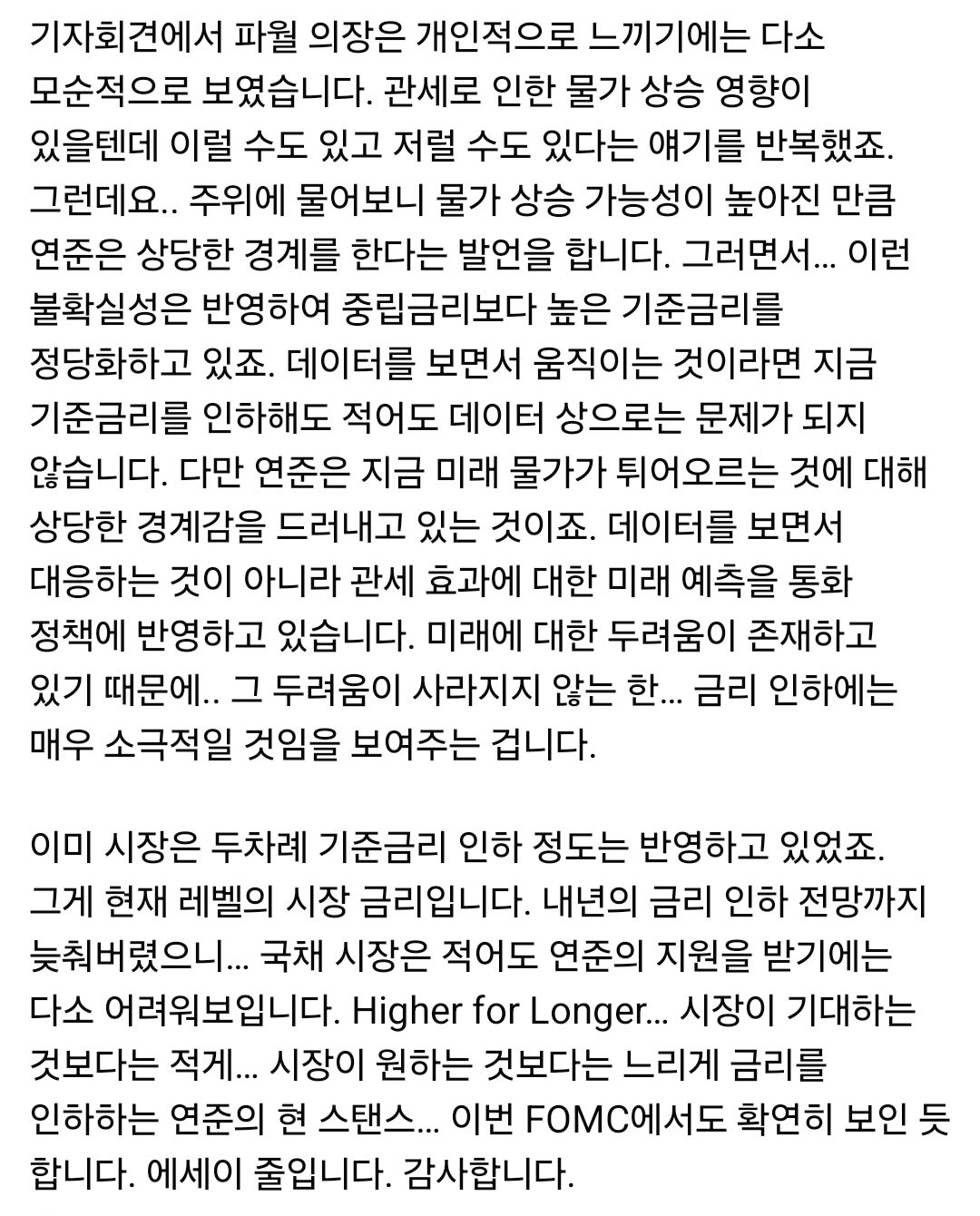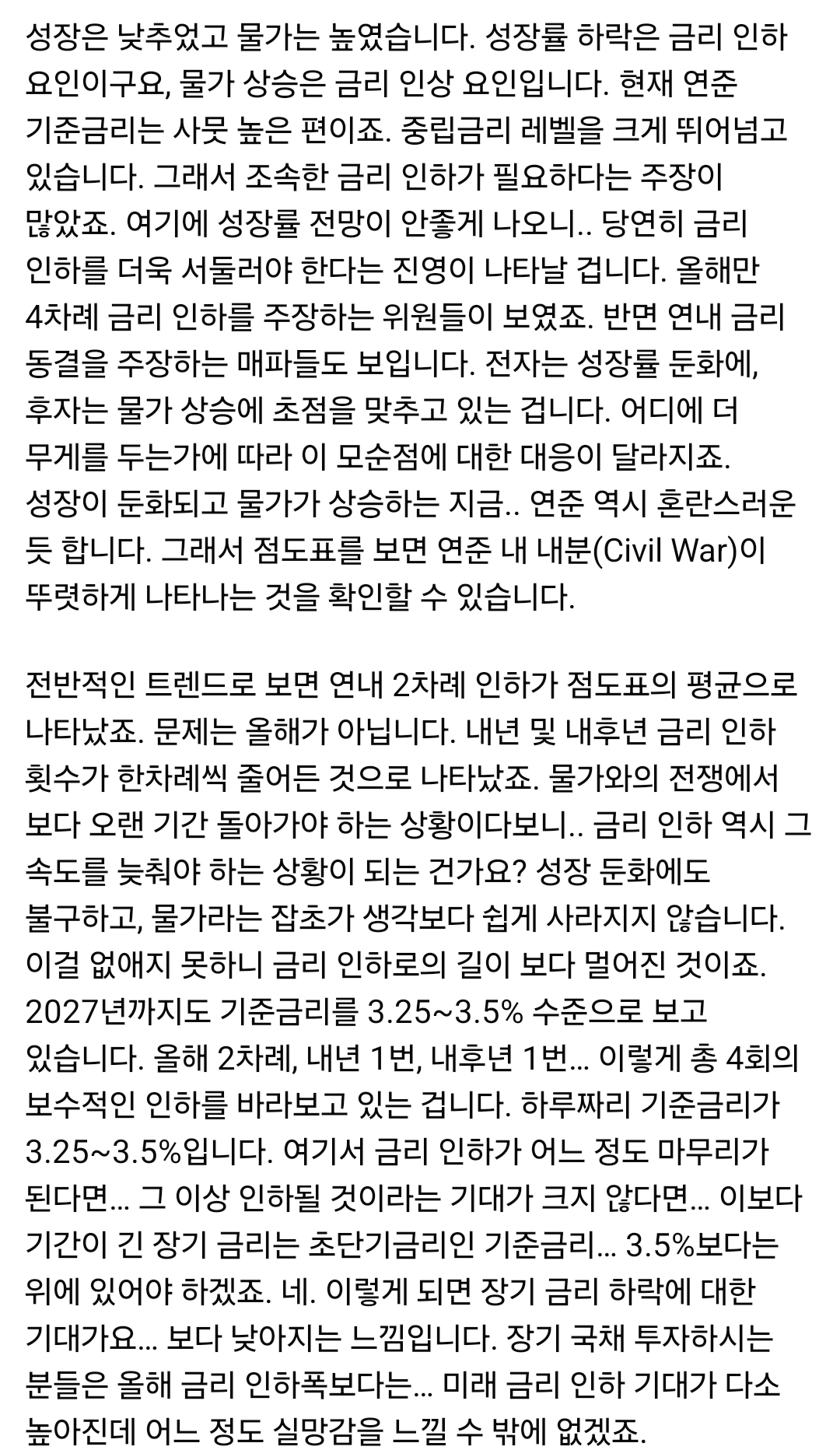 3.금리 인하 속도가 예상보다 늦어질듯함